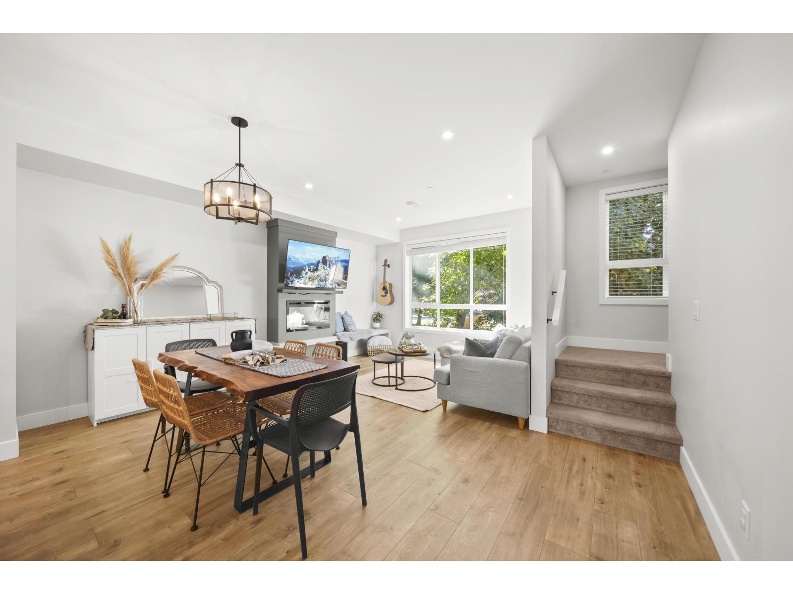 Welcome to Acadia at Garrison Campus! This 4 bed, 4 bath townhouse offers modern finishes and a thoughtful layout. The main floor features a beautiful kitchen with access to a covered patio w/gas hookup for year-round BBQs and a bright living room overlooking Dieppe Park. Upstairs you'll find the primary bedroom with ensuite + 2 bedrooms and a full bath. A powder room is on the main, while the lower level includes a bedroom & a full bath off the garage"-ideal for a teen, nanny, exchange student, or office. Complete with central AC, EV charger, and walking distance to shops, Vedder Park & Rotary Trail, UFV, schools & more! Book your private viewing today! (id:9345)...