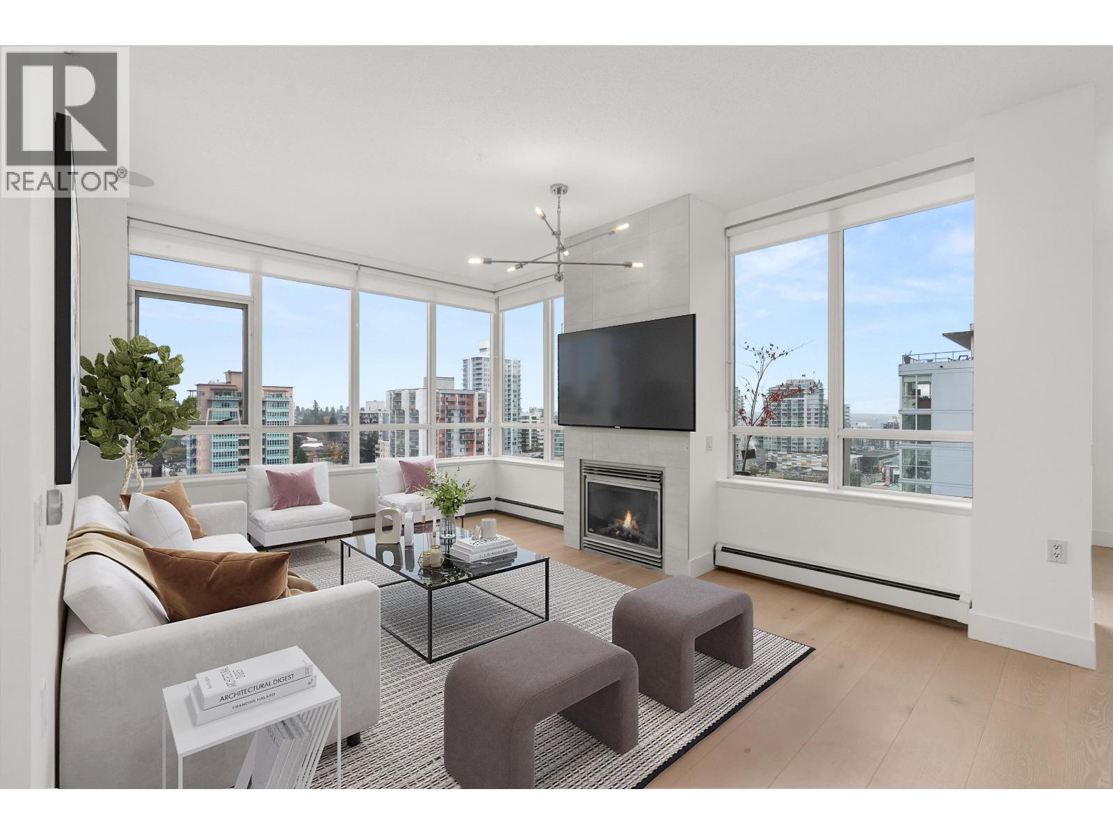 South-east comer sub penthouse at The Symphony! Spacious, bright & freshly updated living spaces, 2 bedrooms, 2 full bathrooms, 2 balconies, 3 PARKING & stunning VIEWS! A coveted concrete building located in the heart of Central Lonsdale, easy walking distance to all amenities & transportation. Fully & professionally renovated in 2021 to high standards, upgraded new wide-plank hardwood floors & full interior paint just completed, fall of 2025. Features include gorgeous sleek & modern kitchen & bathrooms, gas fireplace, 9ft ceilings, & huge windows. Maintenance fee includes gas, heat, & hot water. Pet friendly! OPEN HOUSE SATURDAY JANUARY 10th, 1-3PM (id:9345)...